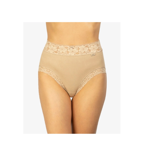 Braga Avet 3324 de algodón, sin costuras laterales para mayor confort y adaptabilidad al cuerpo. Acabado en la cintura con puntilla ancha y en la ingle puntilla estrecha. Diseñada y fabricada en España.